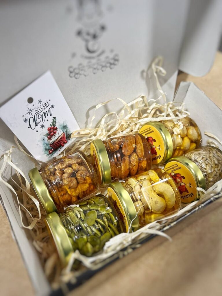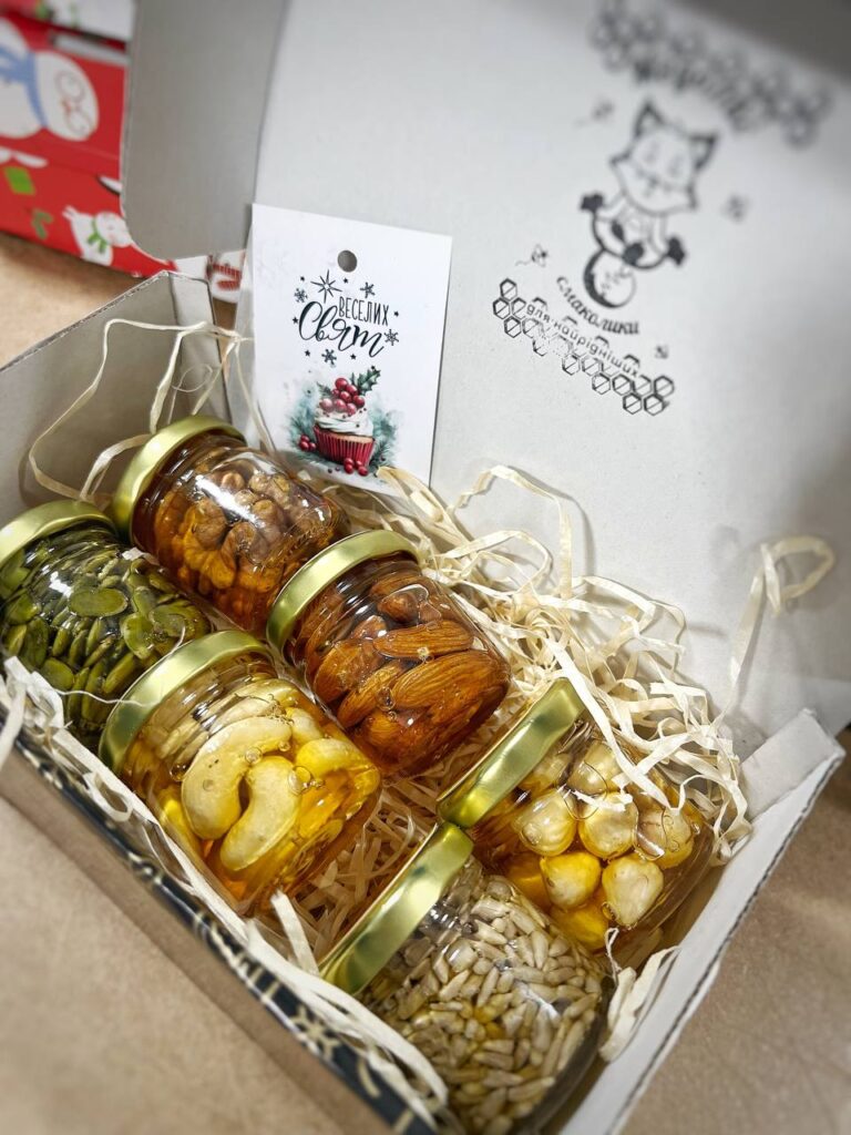 Цей набір створений для тих, хто цінує натуральні продукти та хоче спробувати найпопулярніші поєднання горіхів і насіння з медом.